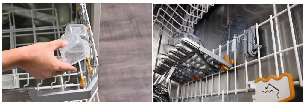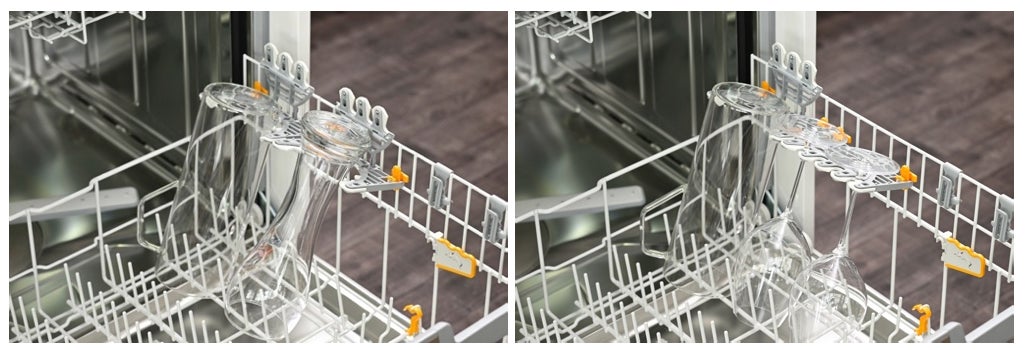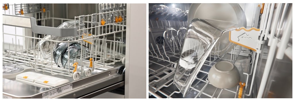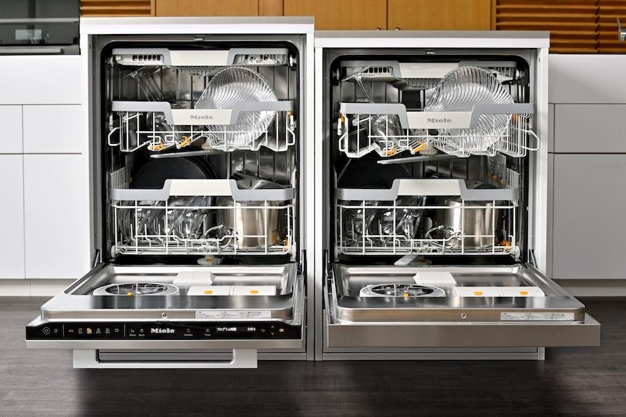 高さのあるキッチンカウンターにもマッチする、日本ではミーレ初の高さ85cmのXXLモデルも新登場。上段のバスケットの高さが高くなったことで、下段だけでなく上段にも大皿をまとめて入れられるようになります。