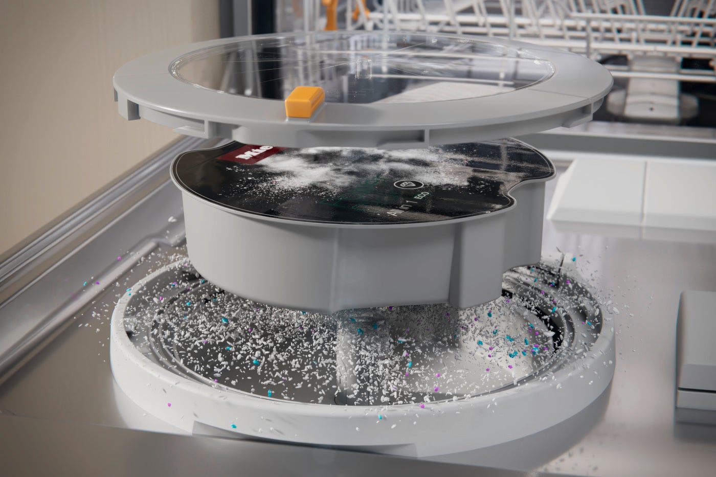 AutoDosは、Miele独自の洗剤自動投入システム。自動投入専用洗剤「PowerDisk」を使用して、プログラムごとに、最適な量の洗剤を適切なタイミングで正確に投入。毎回洗剤をいれる手間がかからず*、洗剤の使いすぎ・不足も防ぎます。