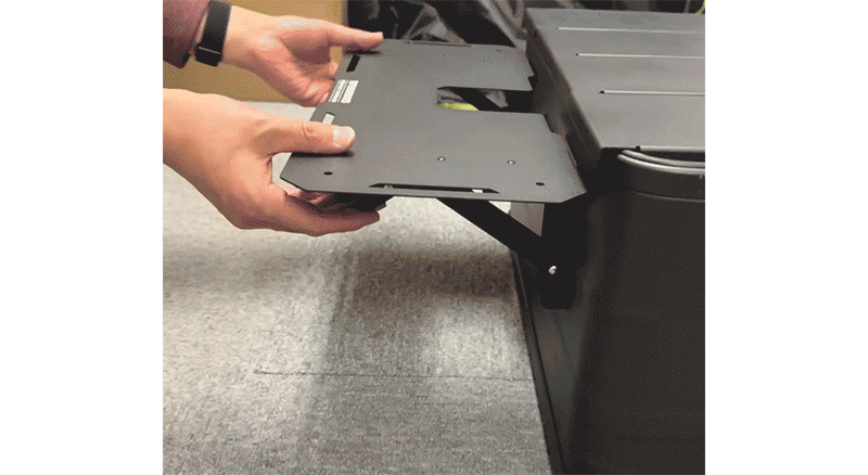 前面に取り付けられた拡張テーブルは使わないときは畳んで収納されていて、使うときに跳ね上げることで簡単にテーブルスペースが広くなります。