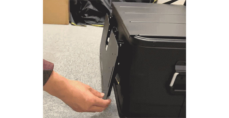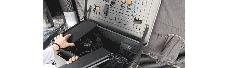 上蓋の内部に取り付けできるモールプレートには丸型や長い穴があいていて、ギアなど取り付けることができます。マウントセットはオプションで購入可能。