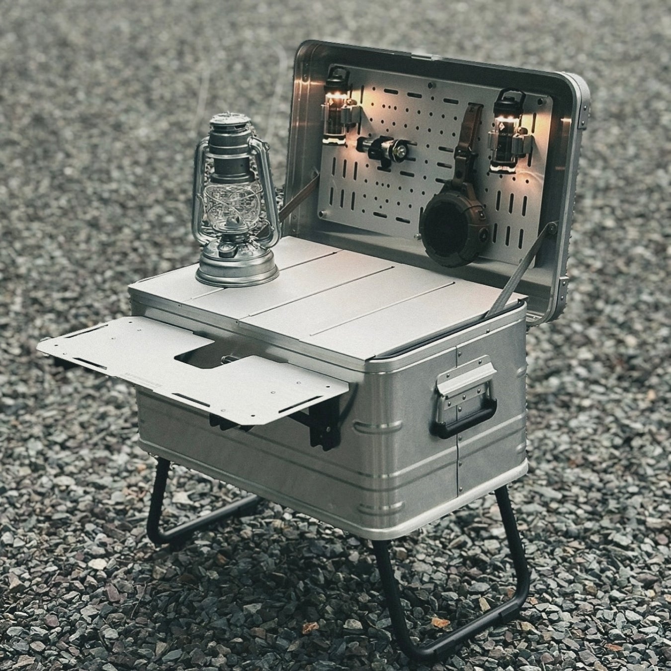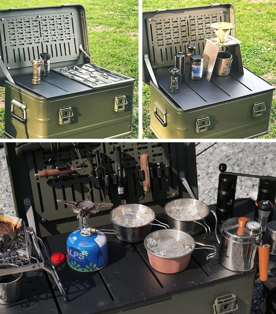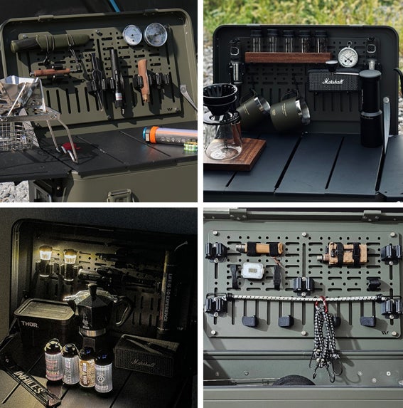 自分仕様にカスタマイズでき、お気に入りのアイテムを飾ったり、よく使うギアを置いたり、キャンプがより楽しくなります。