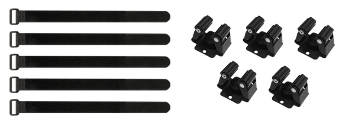 ライトなどの棒状のものをワンタッチで挟み込めるタイプとベルクロの2種類の取り付けパーツになります。こちらはモールプレート専用ではなく汎用品となっています。