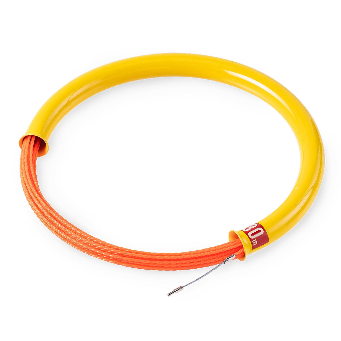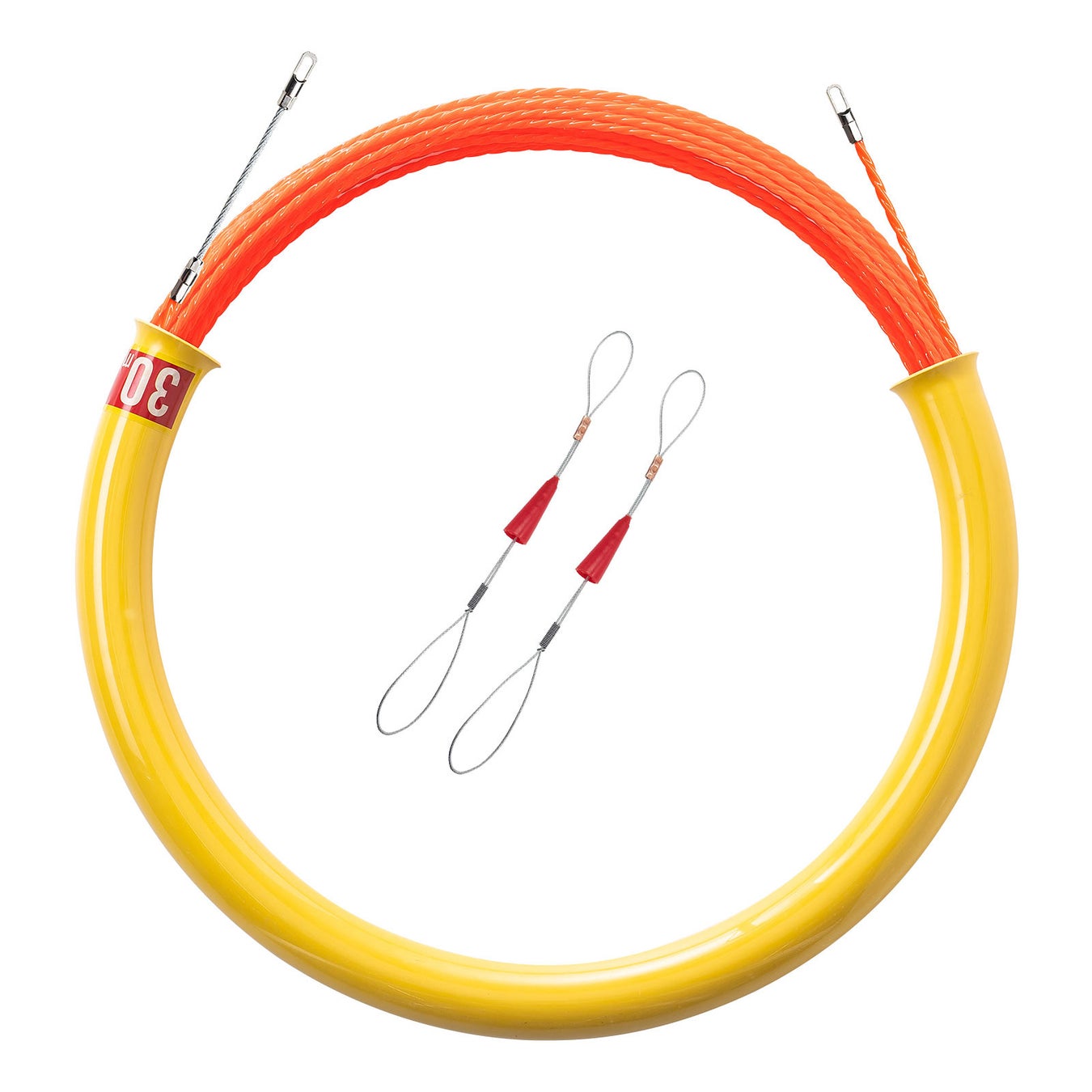 通線ワイヤー 湾曲タイプ 30m ロッド径4.5mm 通線収納ケース付き ポリエステルファイバー製 ガイドワイヤー付き 配線通し 配線ガイド 先端アタッチメント付き