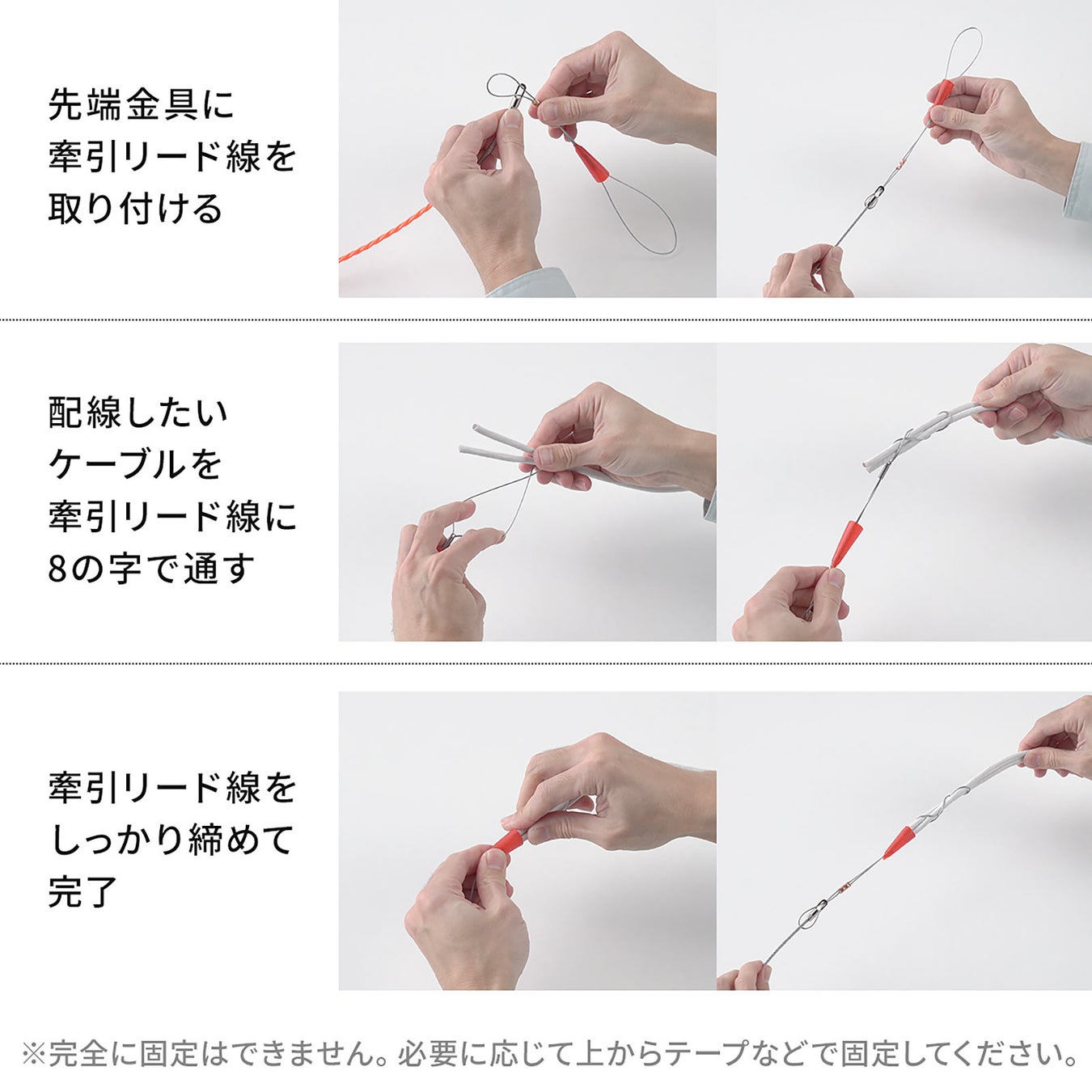 ケーブルを牽引できるリード線2個が付属されています。